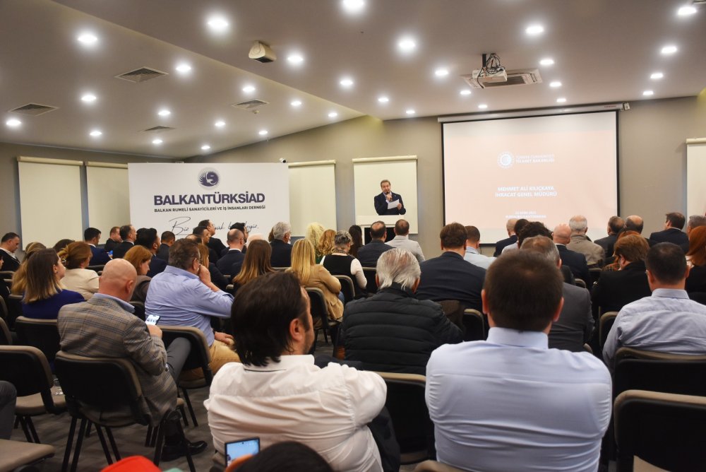 BALKANTÜRKSİAD bilgilendirme programları kapsamında Ticaret Bakanlığı İhracat Genel Müdürü Mehmet Ali Kılıçkaya’nın konuşmacı olarak katılımı ile ‘İhracatta yeni hedefler, yeni projeler’ konulu toplantıyı gerçekleştirdi. BALKANTÜRK Evi çok amaçlı toplantı salonunda düzenlenen toplantıya Bulgaristan Ticari Ateşesi Lyubomir Lyubeov, Uludağ İhracatçı Birlikleri Genel Sekreteri Mümin Karacakayalılar ile çok sayıda denek yönetici ve üyesi katıldı.