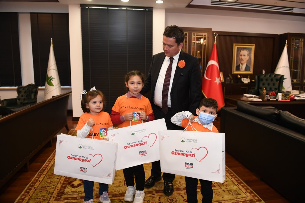 Osmangazi Belediye Başkanı Erkan Aydın, Lösemili Çocuklar Vakfı (LÖSEV) Bursa temsilciliği yetkilileri ile tedavi süreçlerini tamamlayan çocukları makamında ağırladı.